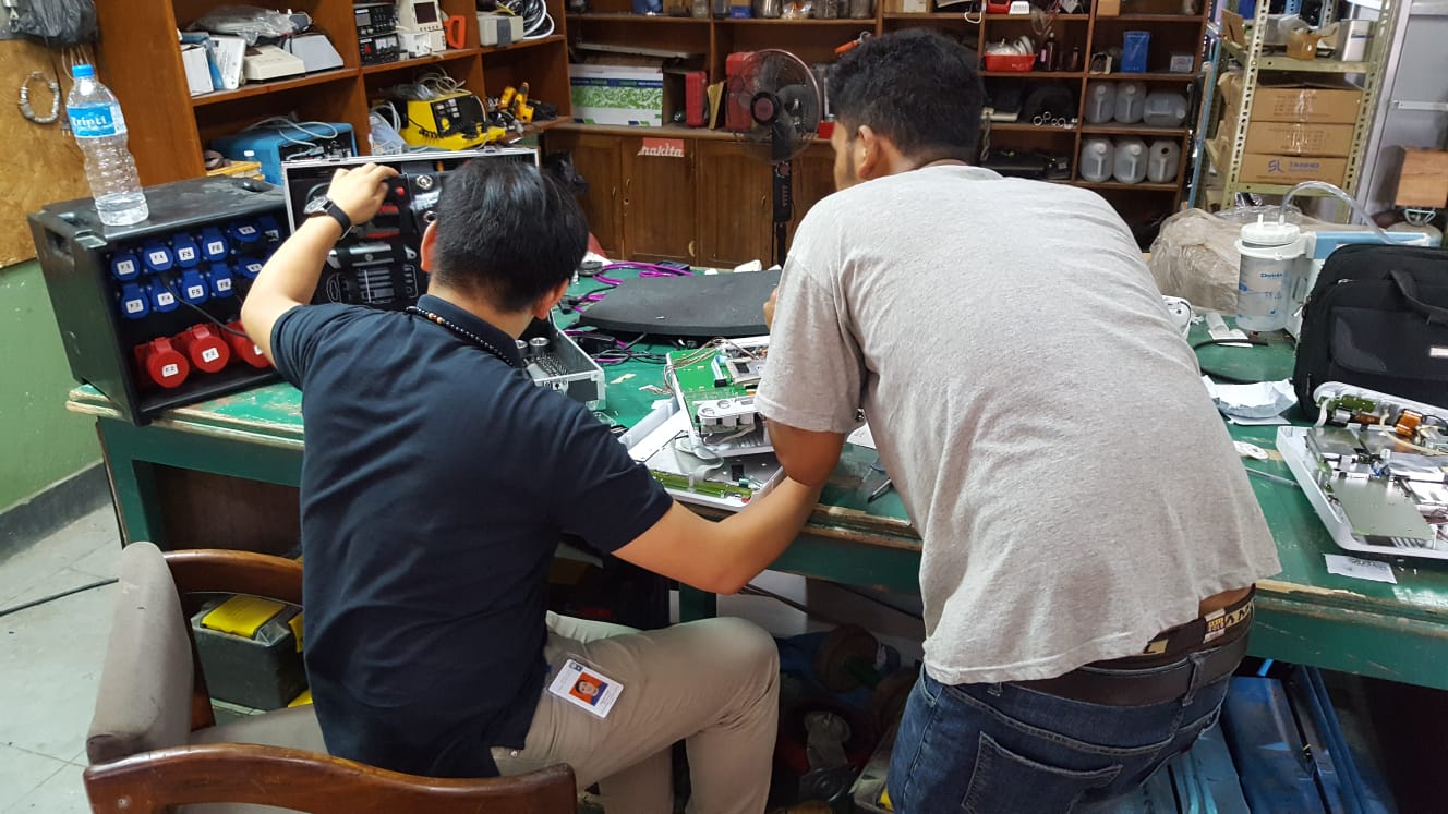 Während sich die GRVD um die medizinische Versorgung kümmern, geben wir von TeoG dabei Rückendeckung, indem wir technischen Support für die für die Behandlungen notwendigen Geräte stellen. Speziell liegt unser Fokus auf dem Etablieren von Wartungsprotokollen und der Ersatzteilbeschaffung. Da vor Ort viele ältere, gespendete Geräte im Gebrauch sind, sind häufig keine Reparaturanleitungen vorhanden und die Dokumentation der einzelnen Arbeitsschritte könnte man als unübersichtlich bezeichnen. Nhat war bereits 2016 vor Ort und hat gemeinsam mit Helmut viele Geräte repariert. Dieses Mal liegt der Fokus mehr auf der Prozessoptimierung, sodass das Krankenhaus eigenständiger agieren kann und weniger auf Hilfe von außen angewiesen ist.