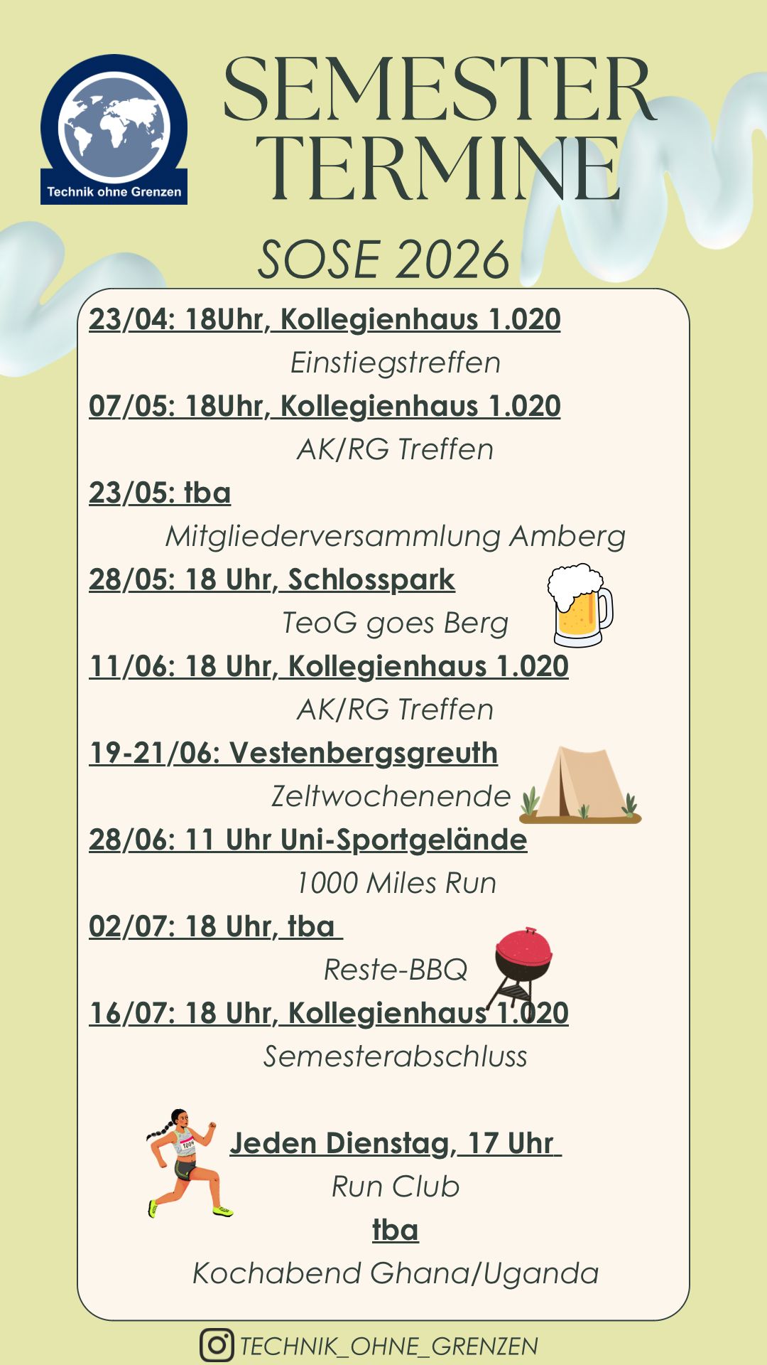 Everybody who is interested in getting to know us or just wants to have a look at what we do, is happily invited to our meetings. We meet every two weeks, usually in the room K2 at the FAU in Erlangen to exchange project related news, updates and all other events and tasks in the regional group. All studies and professions can get engaged despite our name containing "technology". More important is motivation and generally a good spirit.